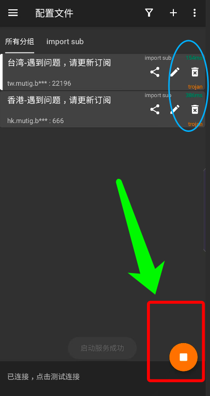 四、返回手机端已经打开的V2rayNG的APP,按照第二步中点击"扫描二维码"后,用手机扫描第三步中的二维码即可
